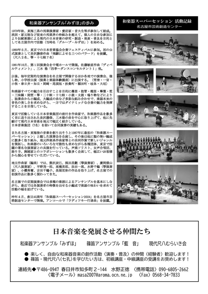 和楽器アンサンブル「みずほ」は関係方面の期待に応えて今回は小編成で参加します。